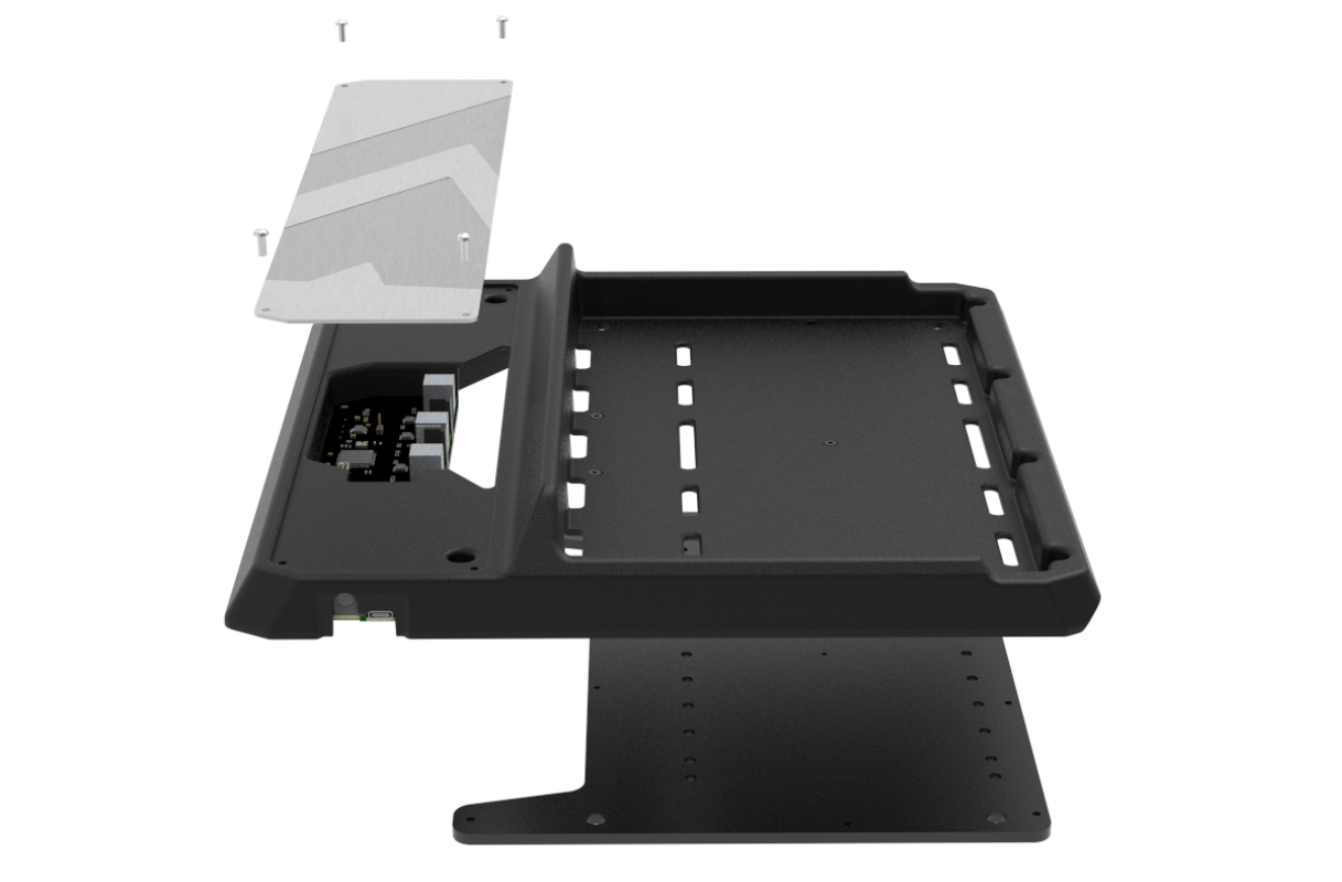 – 5 mm laserem řezané ocelové šasi – Tlumená sendvičová konstrukce – Kartáčovaná nerezová opěrka paty s gravírovaným logem – Nastavitelné rozteče pedálů (zapuštěné montážní otvory) – Boční porty pro snadný přístup – Skryté vedení kabelů pro čistou instalaci
