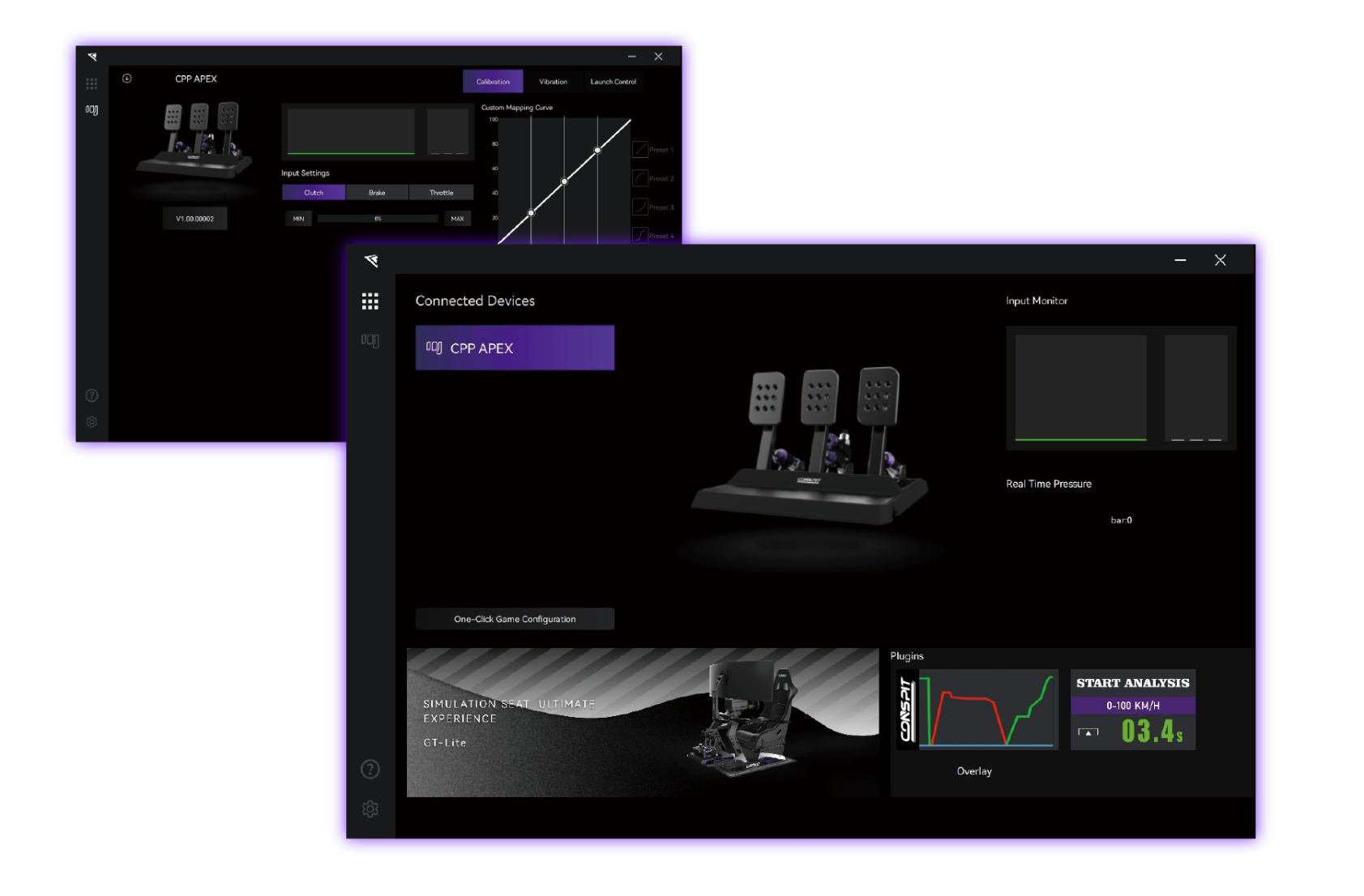 Rozšiřující vibrační modul pro lepší imerzi přes software CONSPIT nebo SimHub (ShakeIt Motor). Umožňuje jemné doladění v různých scénářích a přináší hmatové stopy po změnách stavu trati a vozu.