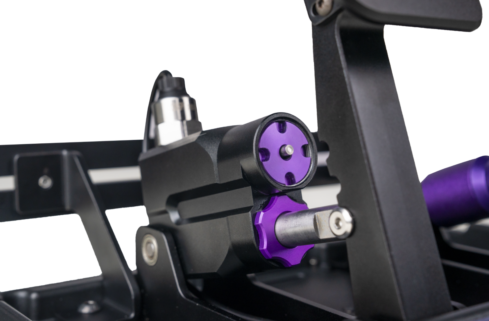 Hliníková slitina s tepelným zpracováním T6, přesná CNC výroba, pískované a eloxované povrchy – odolnost, tuhost a prémiový vzhled.